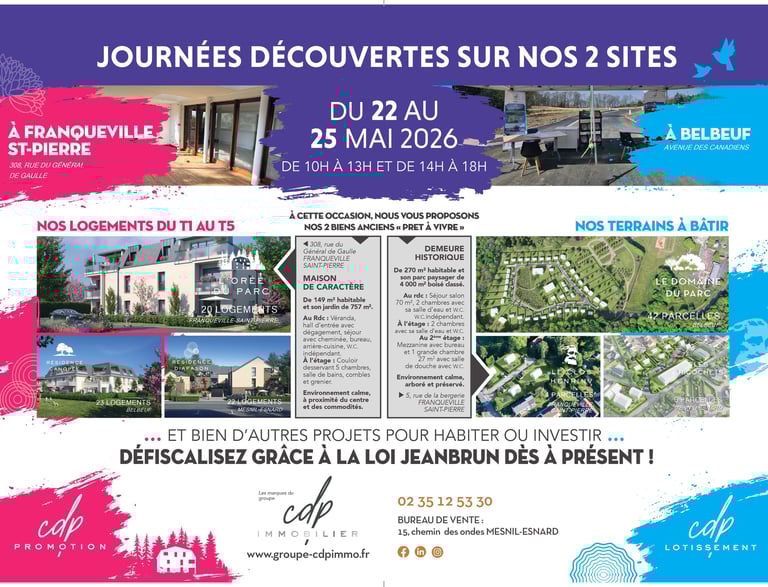 Nous tenons à remercier chaleureusement toutes les personnes qui sont venues nombreuses nous rencontrer et découvrir nos projets immobiliers lors de nos dernières portes ouvertes, qui se sont déroulées du 20 au 23 mars 2026.